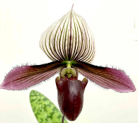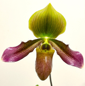 Paph Hawaiian Pops is a mottled leaf with some excellent foliage characteristics - bright spring green with clear dark markings and satisfyingly leathery texture - combined with a lovely translucent purple flower. Here we've crossed it with Graciously Hawaiian, that has very tall, graceful spikes with saturated pink and green flowers, plus high contrast gray-green and dark green mottled foliage. I'm interested to see how the foliage matures - will we get lots of dramatic color? We also expect of course some lovely purple flowers, possibly with some coloratum effects.